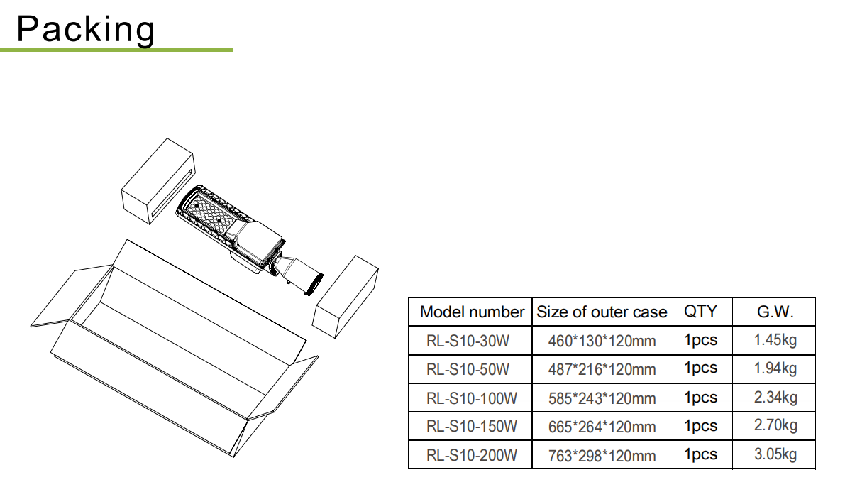 | articolo n. | RL-S10-30W | RL-S10-50W | RL-S10-10OW | RL-S10-150W | RL-S10-200W | |